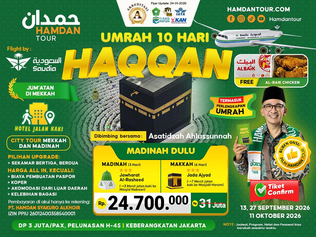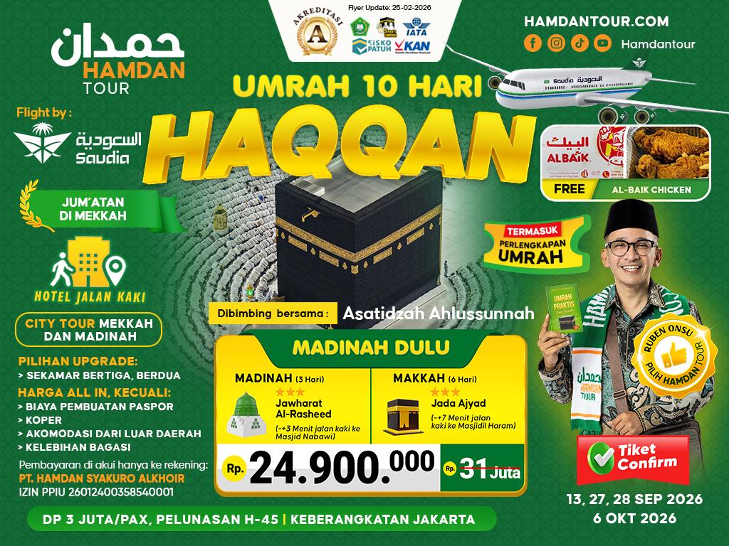 Umrah Haqqan Pesawat Saudia | Hotel Jada Ajyad | 10 Hari